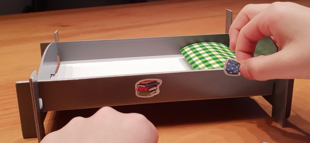 Das Handybett ist flink zusammen mit Kindern aufgebaut (sogar ein Kissen bekommt das Handy!). Man kann es auch mit den beigefügten Stickern verzieren und so nach eigenen Geschmack gestalten.